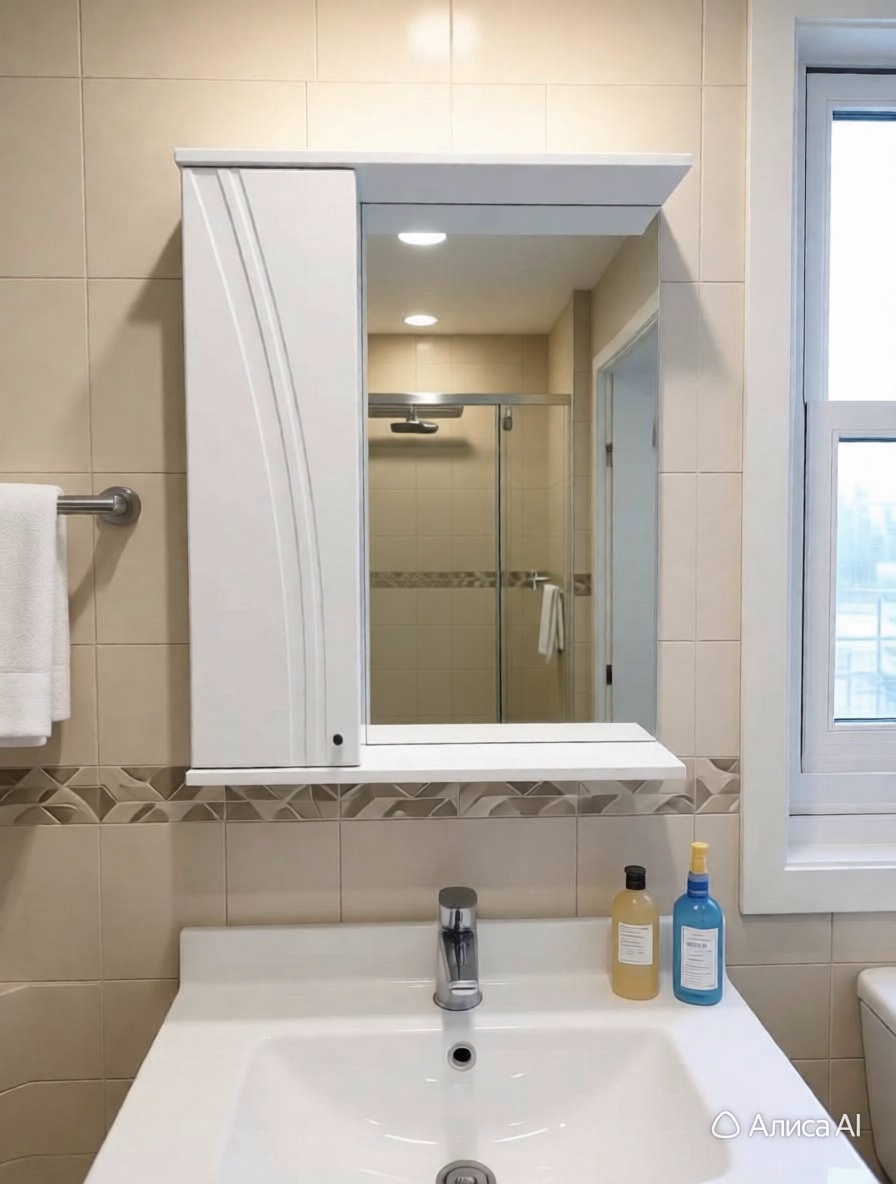 Удобство хранения: Три отсека в шкафчике зеркала с полочками помогут организовать пространство для всех необходимых принадлежностей.