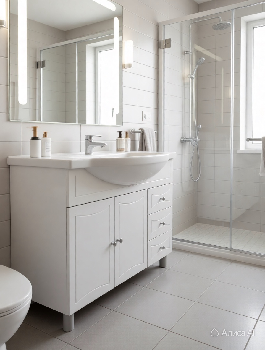 Система хранения: три удобных выдвижных ящика и две большие открытые полки внутри, подходят для хранения косметики, средств гигиены и много другого.